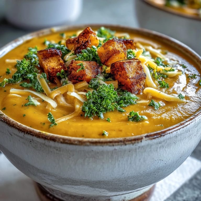 Save My kitchen smelled like caramelized squash and toasted garlic on the afternoon I first made this soup, and I knew immediately it would become a regular rotation. There's something about roasting vegetables until their edges turn golden that transforms what could be ordinary into something worth repeating. The sharp cheddar stirred in at the end was my nod to the creamy soups I'd order at cafes, except this version felt more honest, more mine. It's the kind of dish that makes your kitchen feel warm even on gray days.