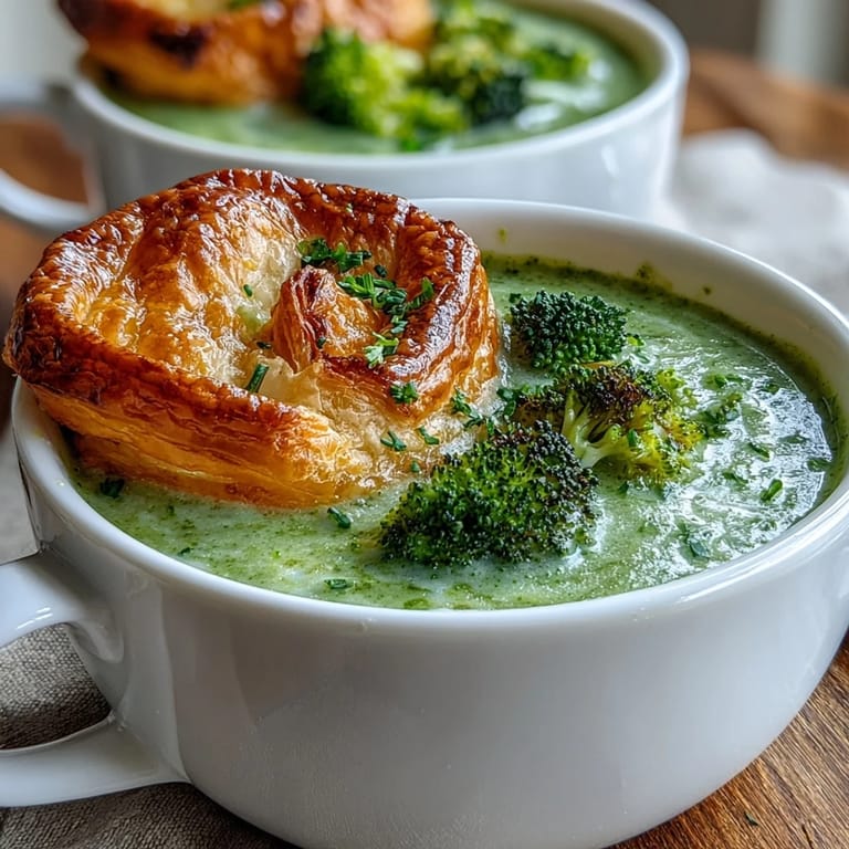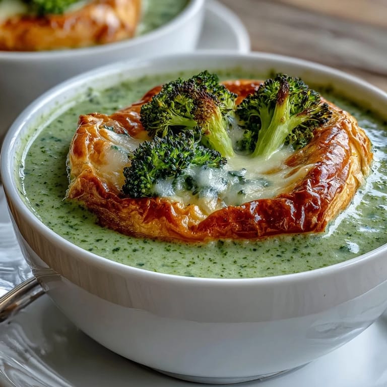 What sets this dish apart is the contrast between the smooth, creamy soup and the sharp, melted cheese within the puff pastry. Whether you're serving this to guests or enjoying a quiet dinner at home, the golden pastries provide a professional-looking finish that is surprisingly simple to achieve.