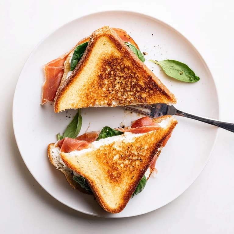This sandwich pairs wonderfully with arugula for peppery bite, fig jam for sweetness, or caramelized onions for depth. A drizzle of balsamic glaze or honey right before serving adds an acidic or sweet contrast that cuts through the richness.